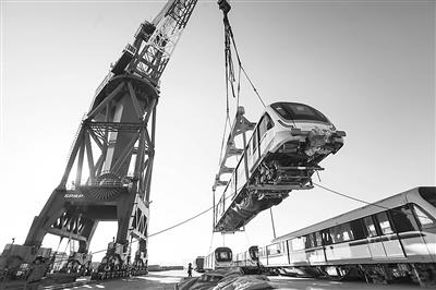 出口新加坡的地鐵車(chē)廂12月25日在遼寧營(yíng)口港裝船外運(yùn) 記者 白雪騏攝